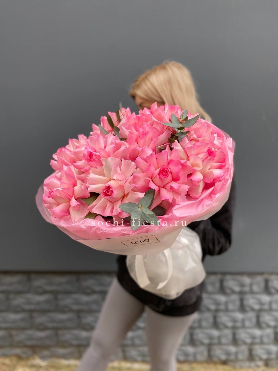 французские розовые розы в оформлении с эвкалиптом  На фото 11.