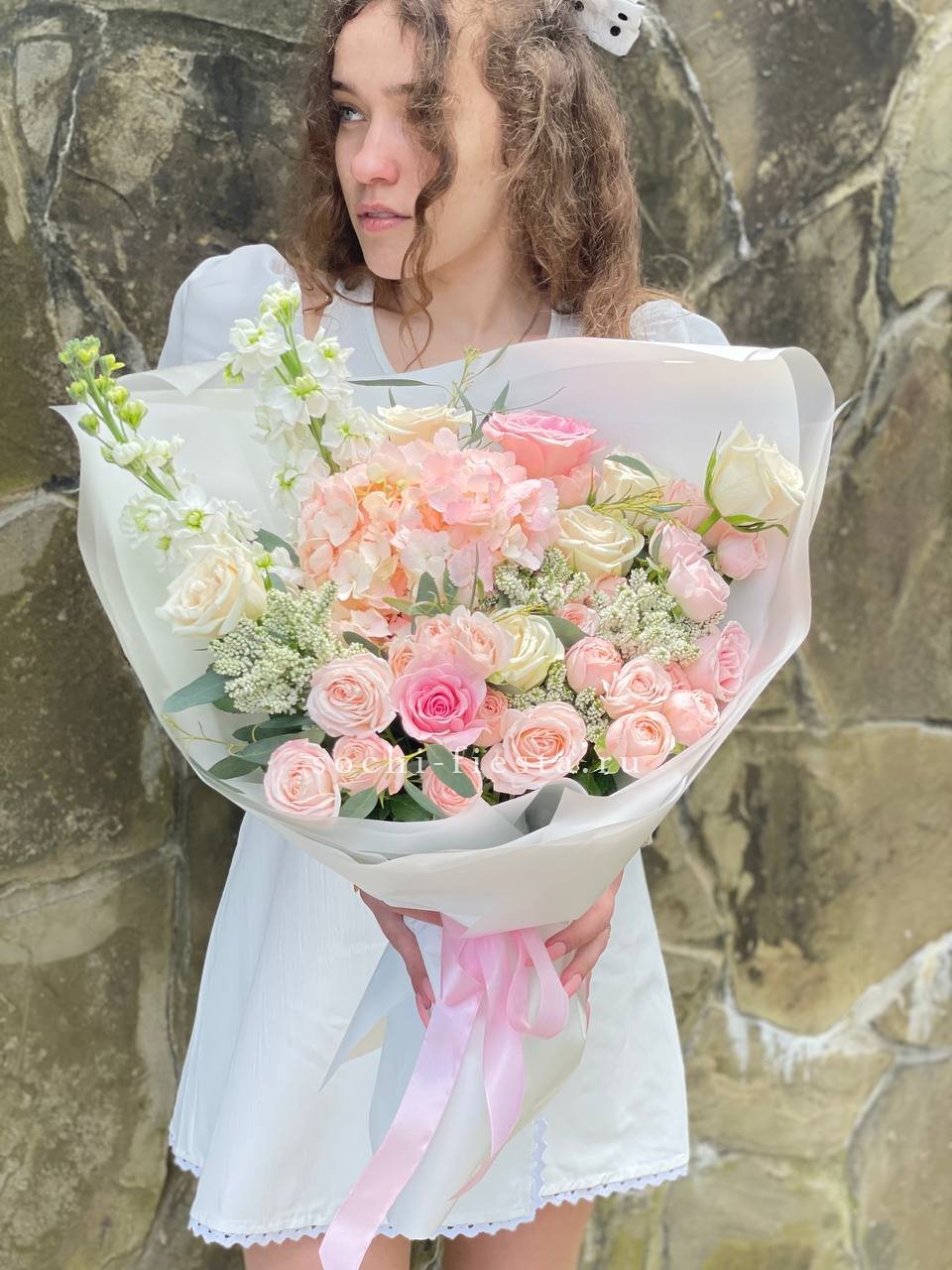 Мы работаем только со свежими цветами — букеты радуют от 7 до 14 дней и дольше при правильном уходе.
