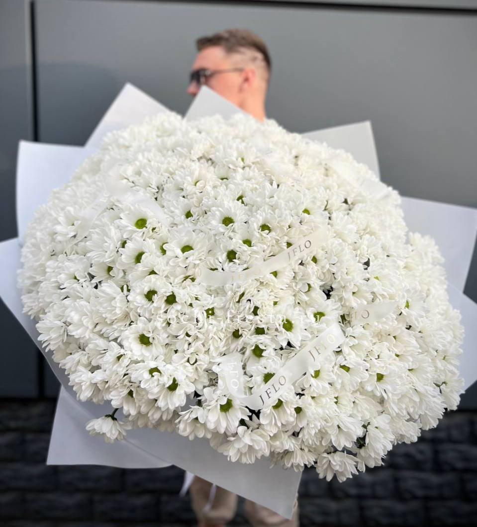 роскошный букет из 101 хризантемы.