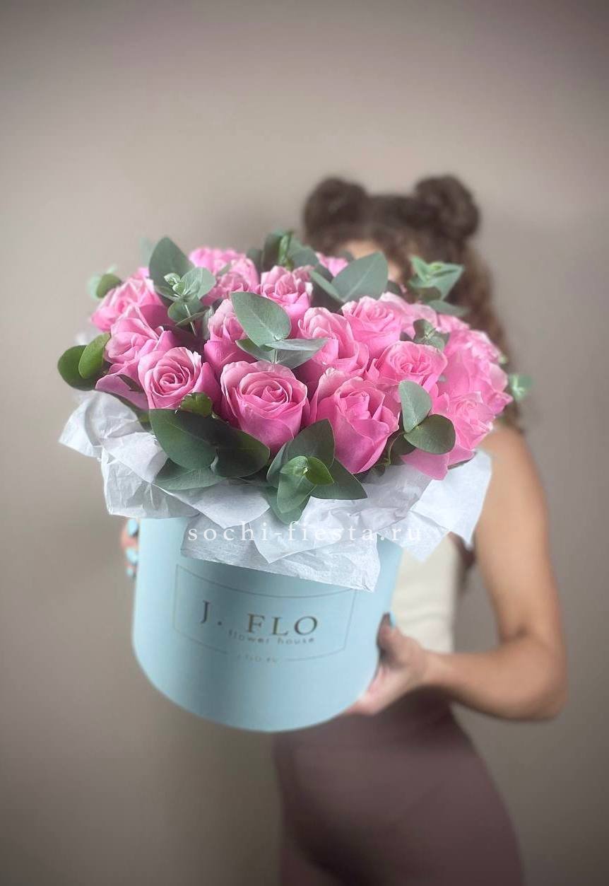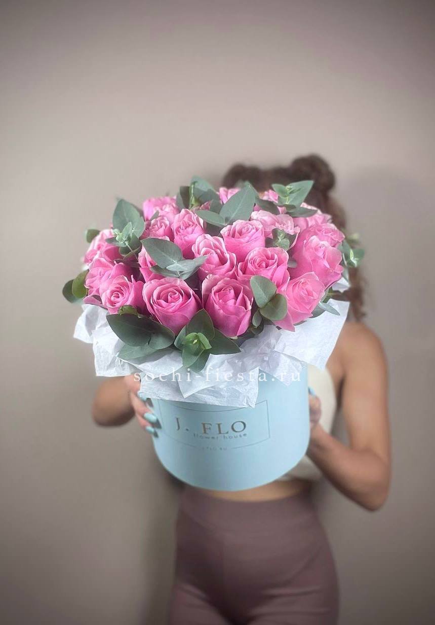 розы, гортензия, эустома, эвкалипт, дизайнерская упаковка.