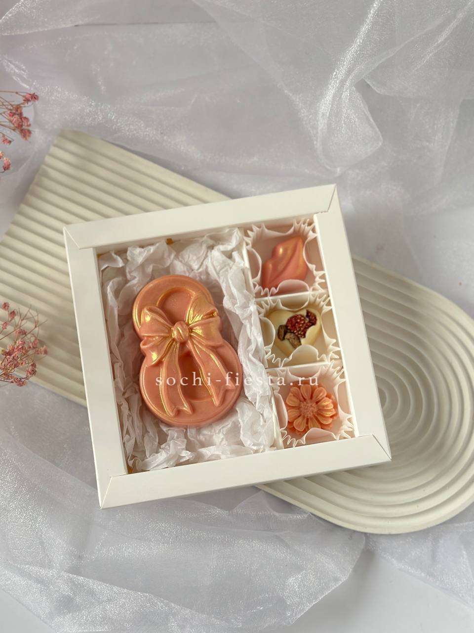 Ассорти из бельгийского шоколада с клубникой, миндалём и фисташкой в круглой коробке. Белая глазурь и яркие сублимированные ягоды создают праздничную композицию ручной работы.