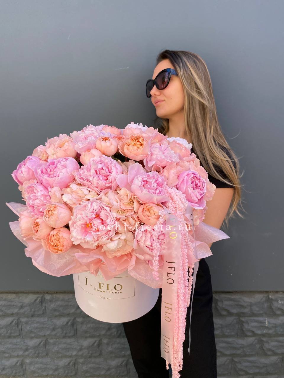 Коробка с пионами "Дабл фловер"