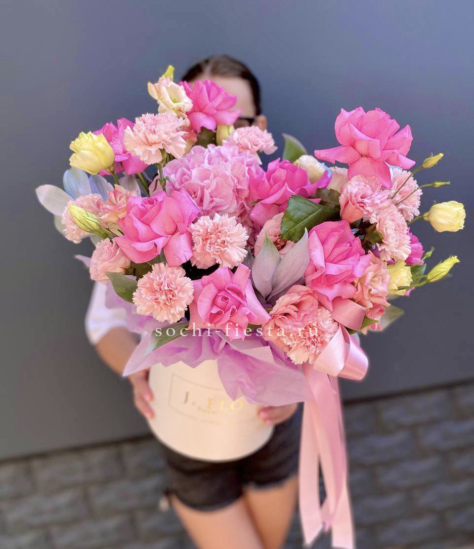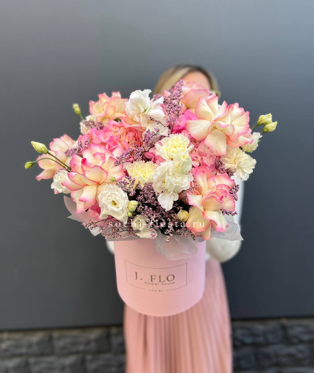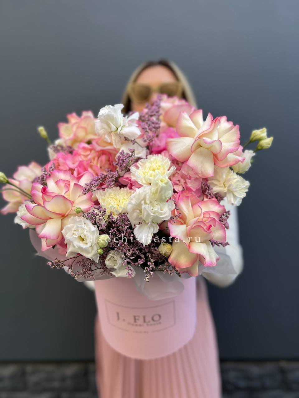 гортензия, пионовидные розы, эустома, эвкалипт, бокс 16.