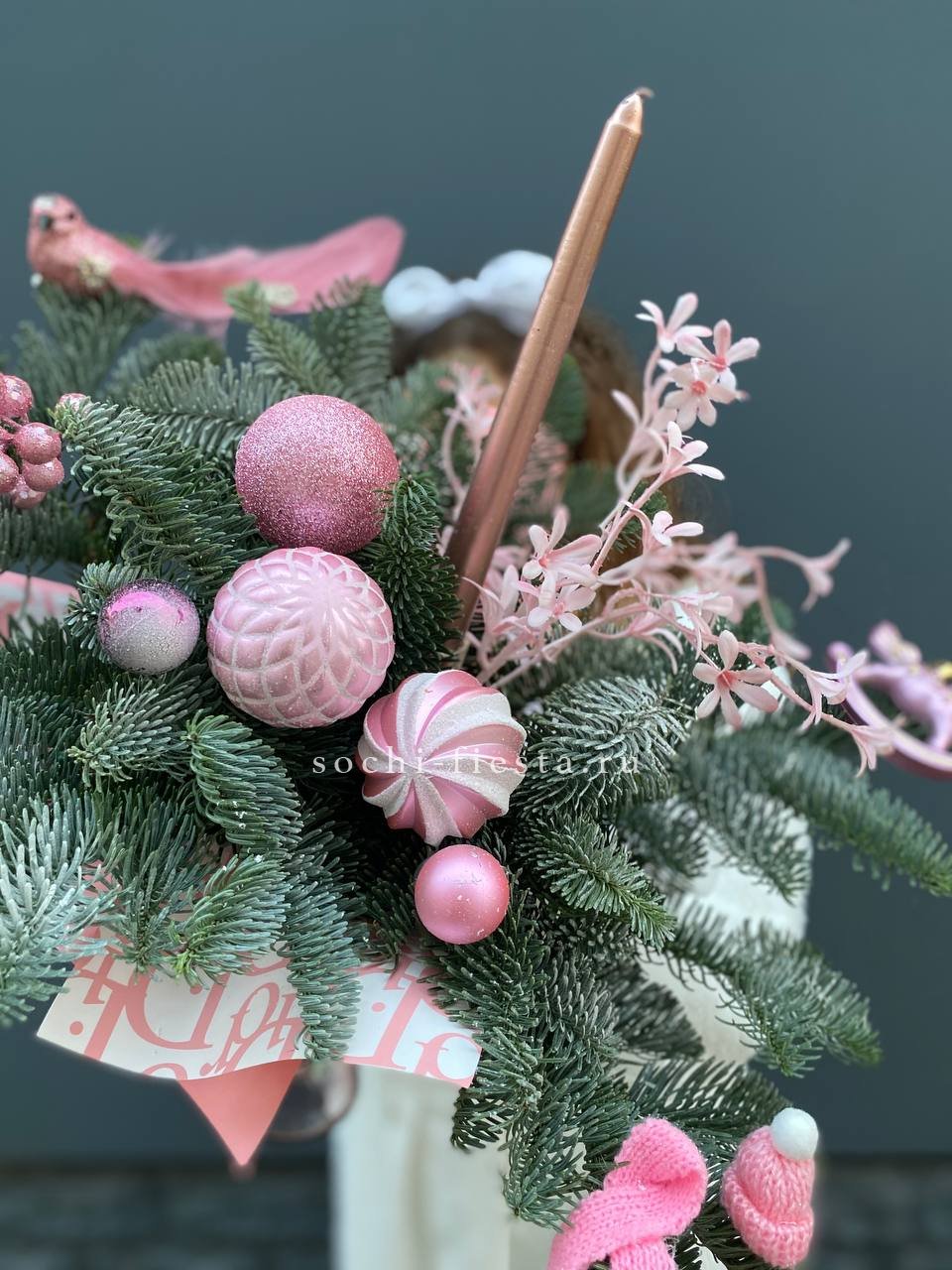 нобилис, бокал, оазис, свечи, новогодние игрушки, декор ВНИМАНИЕ! Готовая композиция (декор) может иметь незначительные внешние отличия от примера на фотографии.