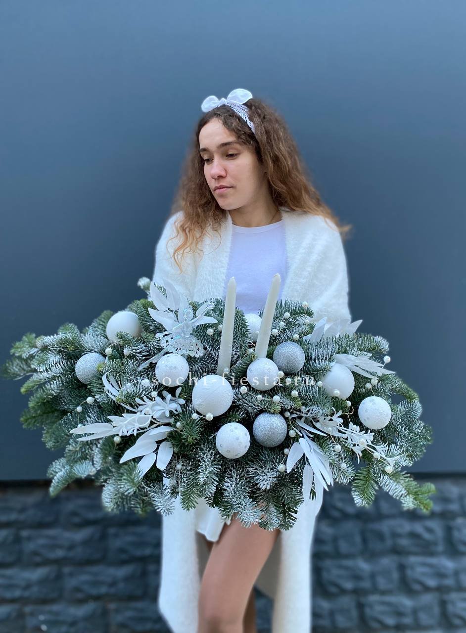 нобилис, балерина, оазис, свечи, новогодние игрушки, декор ВНИМАНИЕ! Готовая композиция (декор) может иметь незначительные внешние отличия от примера на фотографии.