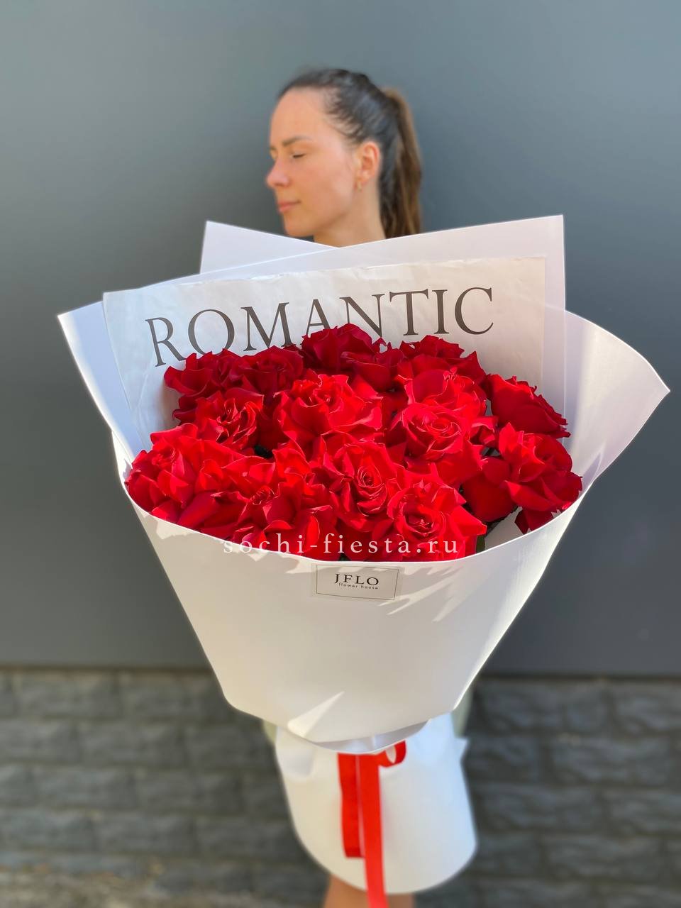 Двадцать пять красных роз с длинными стеблями держат форму и долго радуют свежестью. Классическая красная гамма звучит уверенно и ярко в любой обстановке.