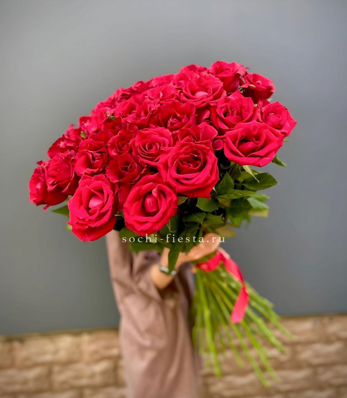 25 высоких красных роз