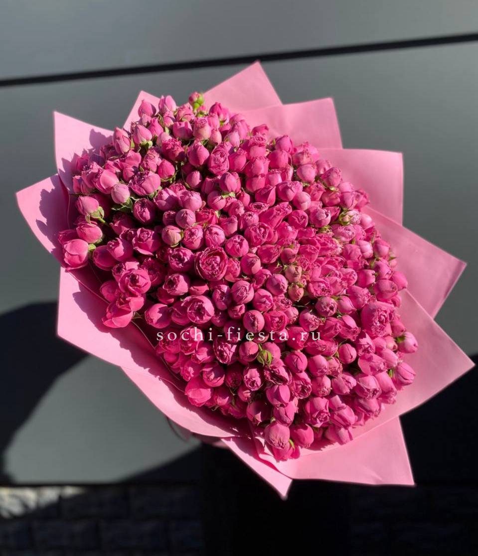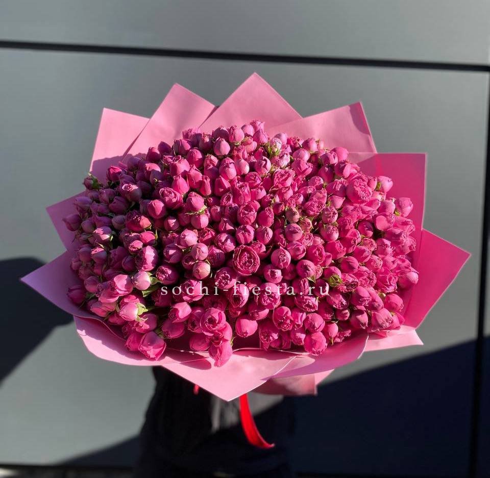 11 пионовидных кустовых роз розового оттенка, оформление.