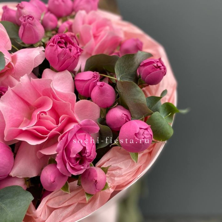 Зима и лето в Твери — розы и хризантемы как основа. Эти виды стабильны в поставках круглый год. Флорист дополняет их сезонными акцентами: хвойные ветви зимой, открытая эустома летом. Сборный букет в любое время года выглядит живым и актуальным.