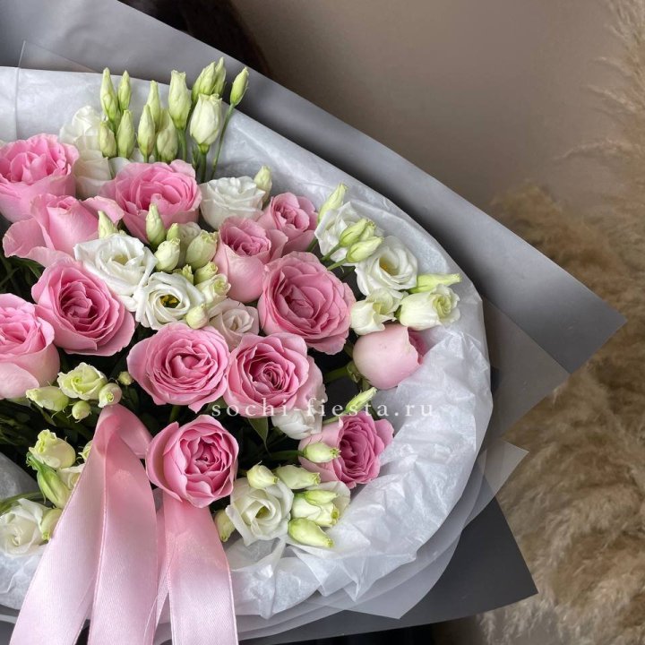 Зима и лето в Твери — розы и хризантемы как основа. Эти виды стабильны в поставках круглый год. Флорист дополняет их сезонными акцентами: хвойные ветви зимой, открытая эустома летом. Сборный букет в любое время года выглядит живым и актуальным.