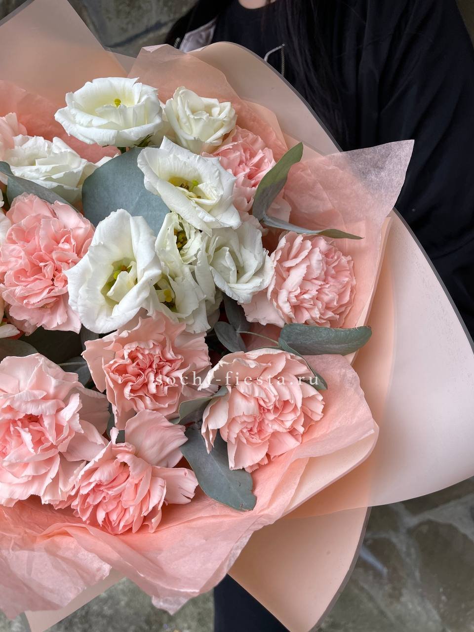 гортензия, бомбастик, диантусы, эвкалипт, антиринум, хризантема, пленка.