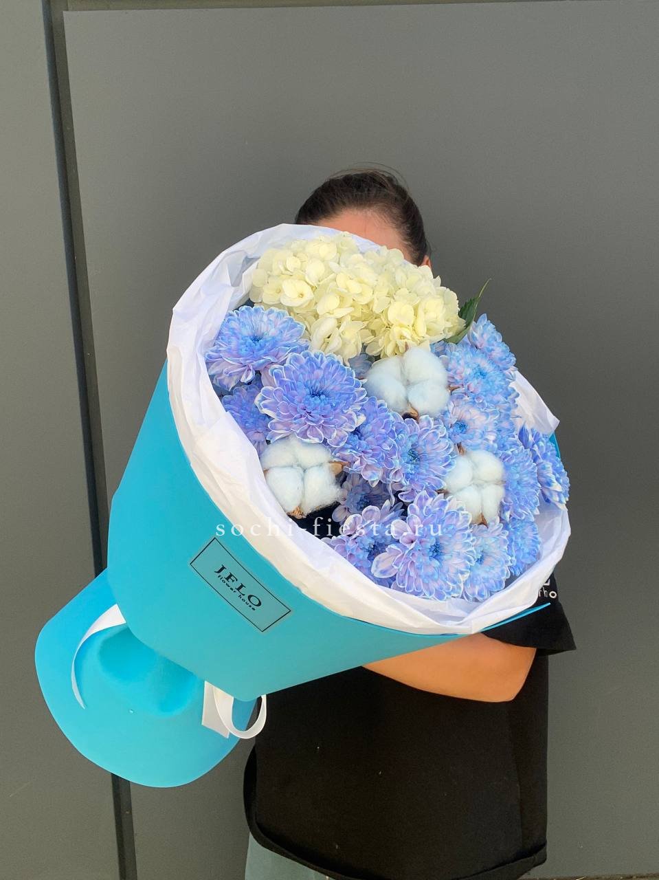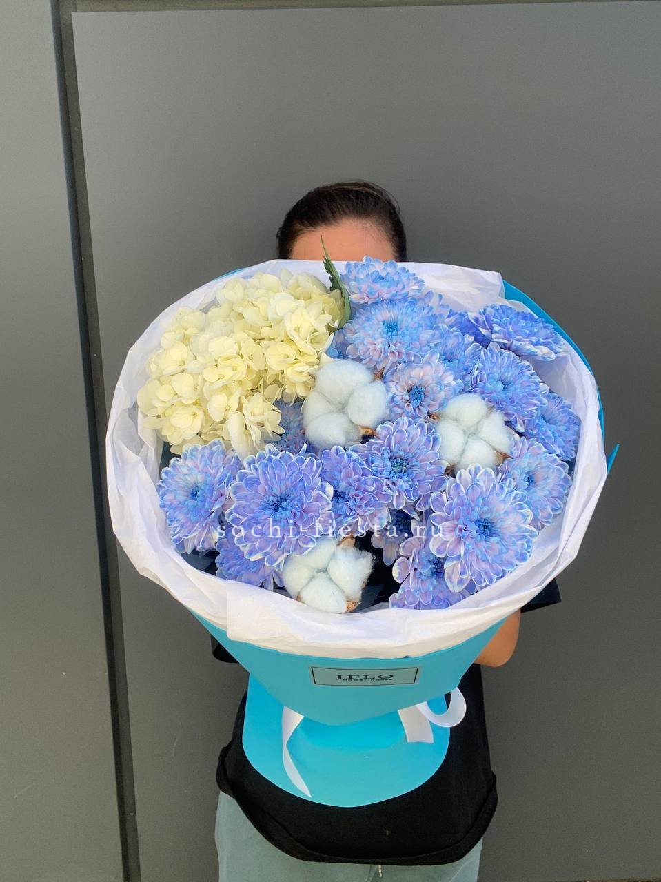 Гортензия задаёт пышную основу, а маттиола и лимониум наполняют букет текстурной глубиной. Французские розы и ковыль создают динамику, которая оживляет композицию и придаёт ей выразительность.